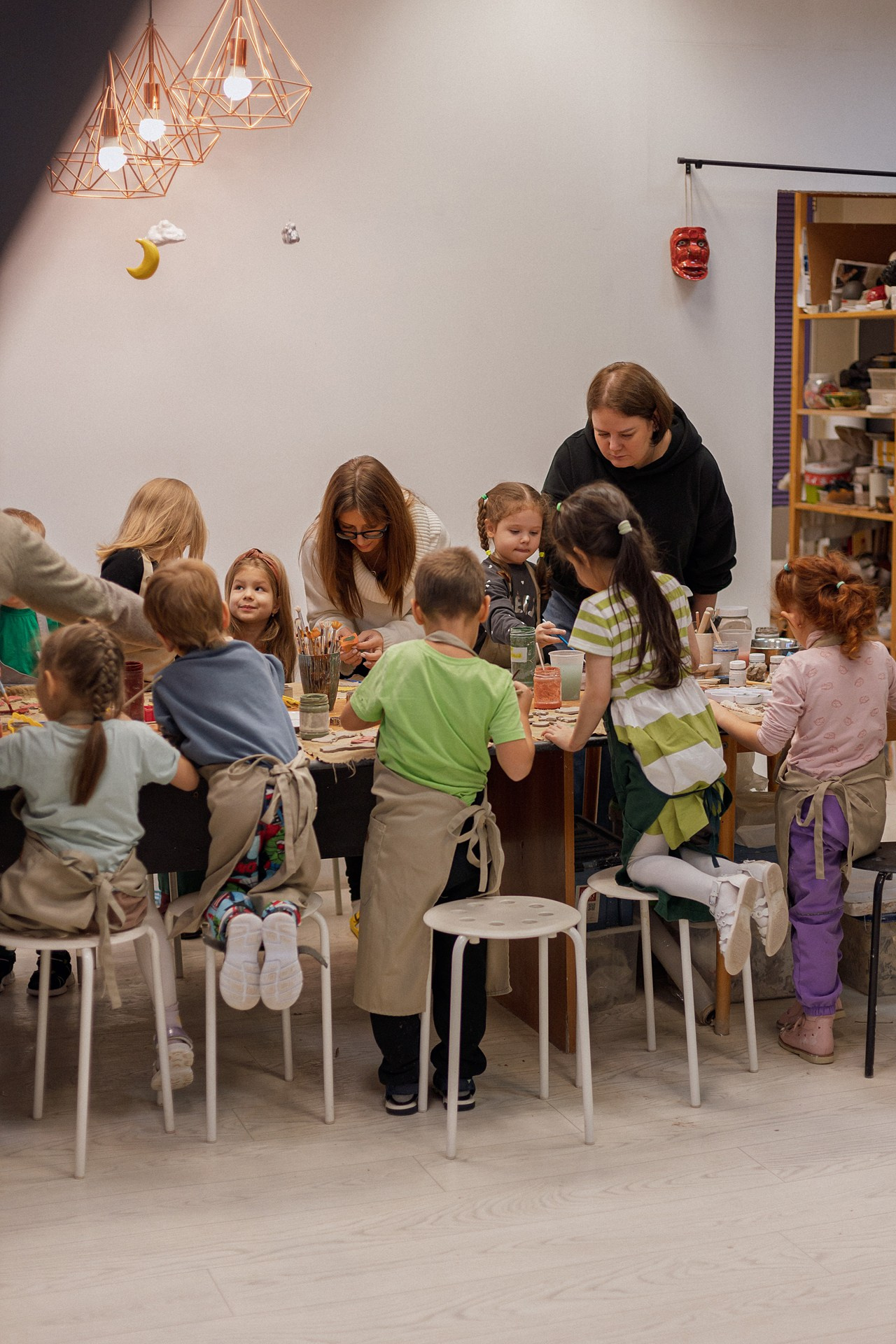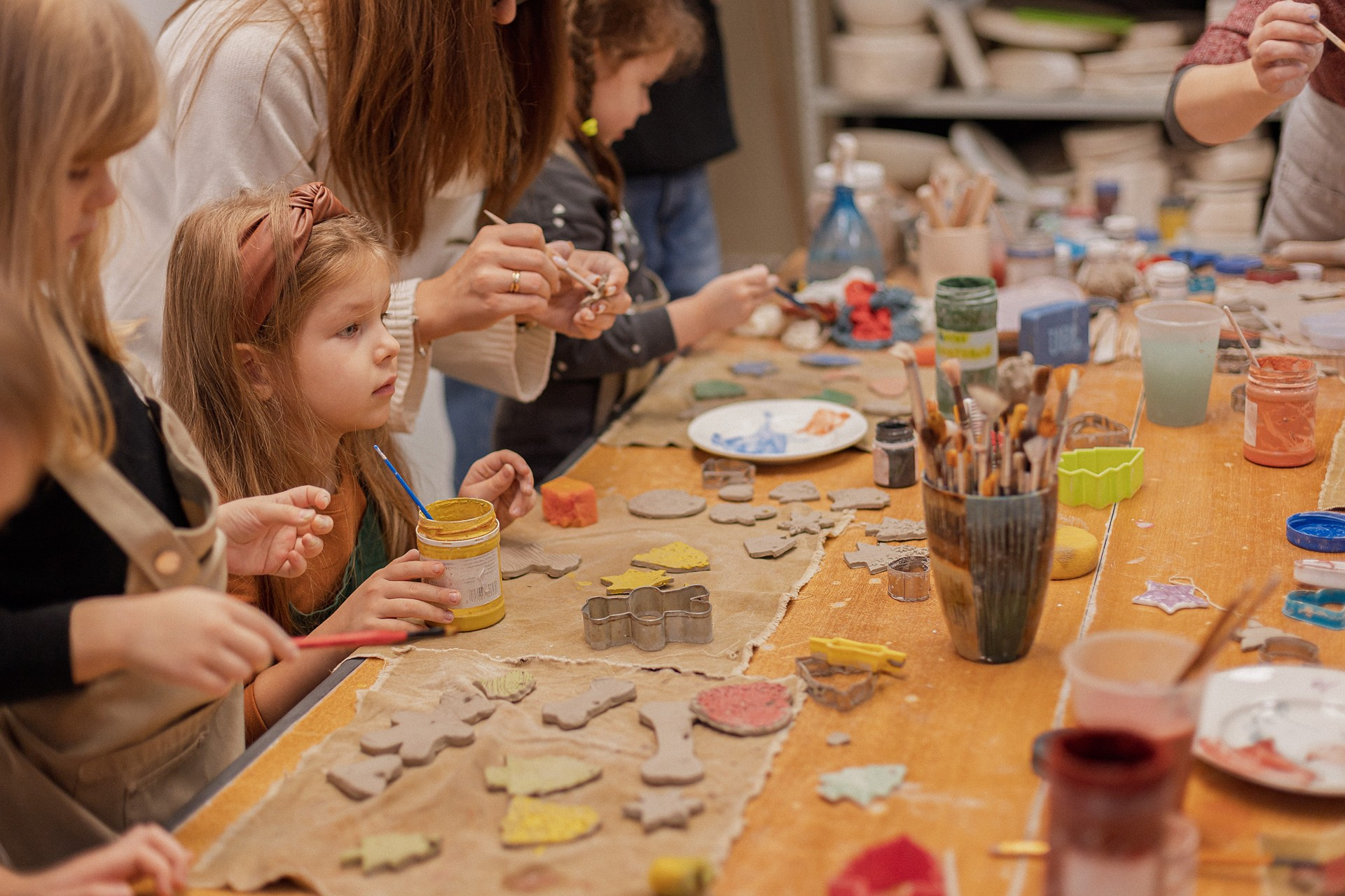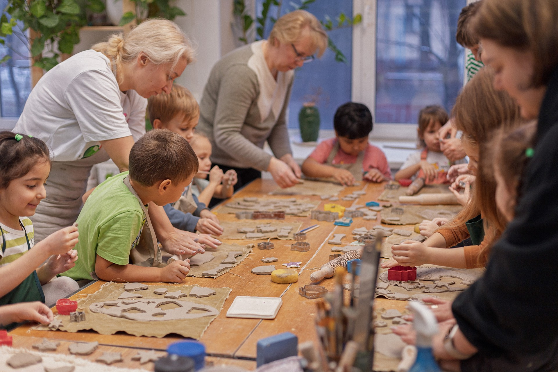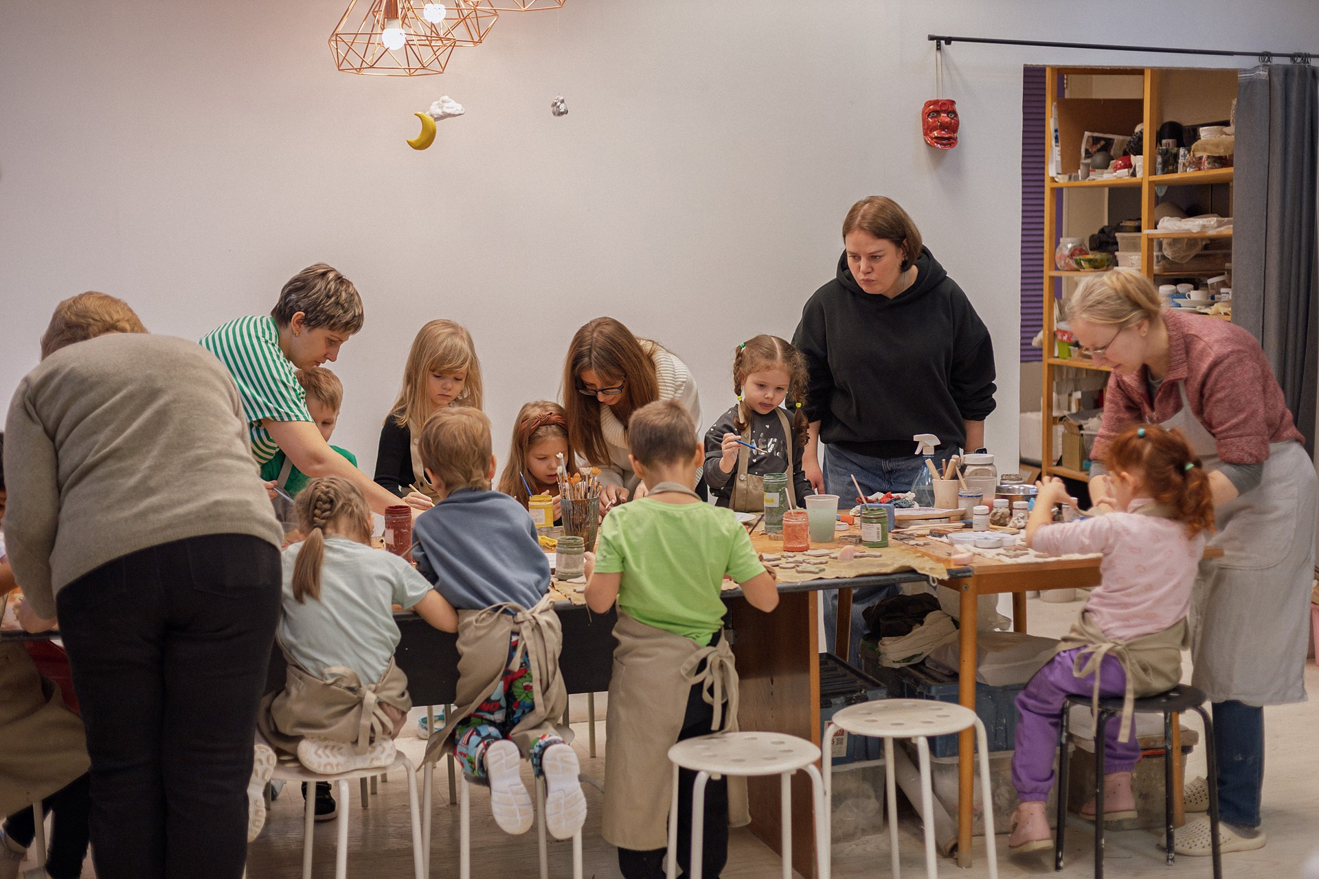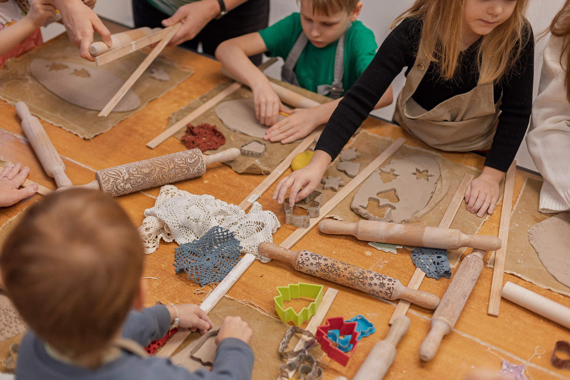Детишки делали ёлочные игрушки, потом их обожгут в специальной печи при 1000 градусах и они будут готовы.