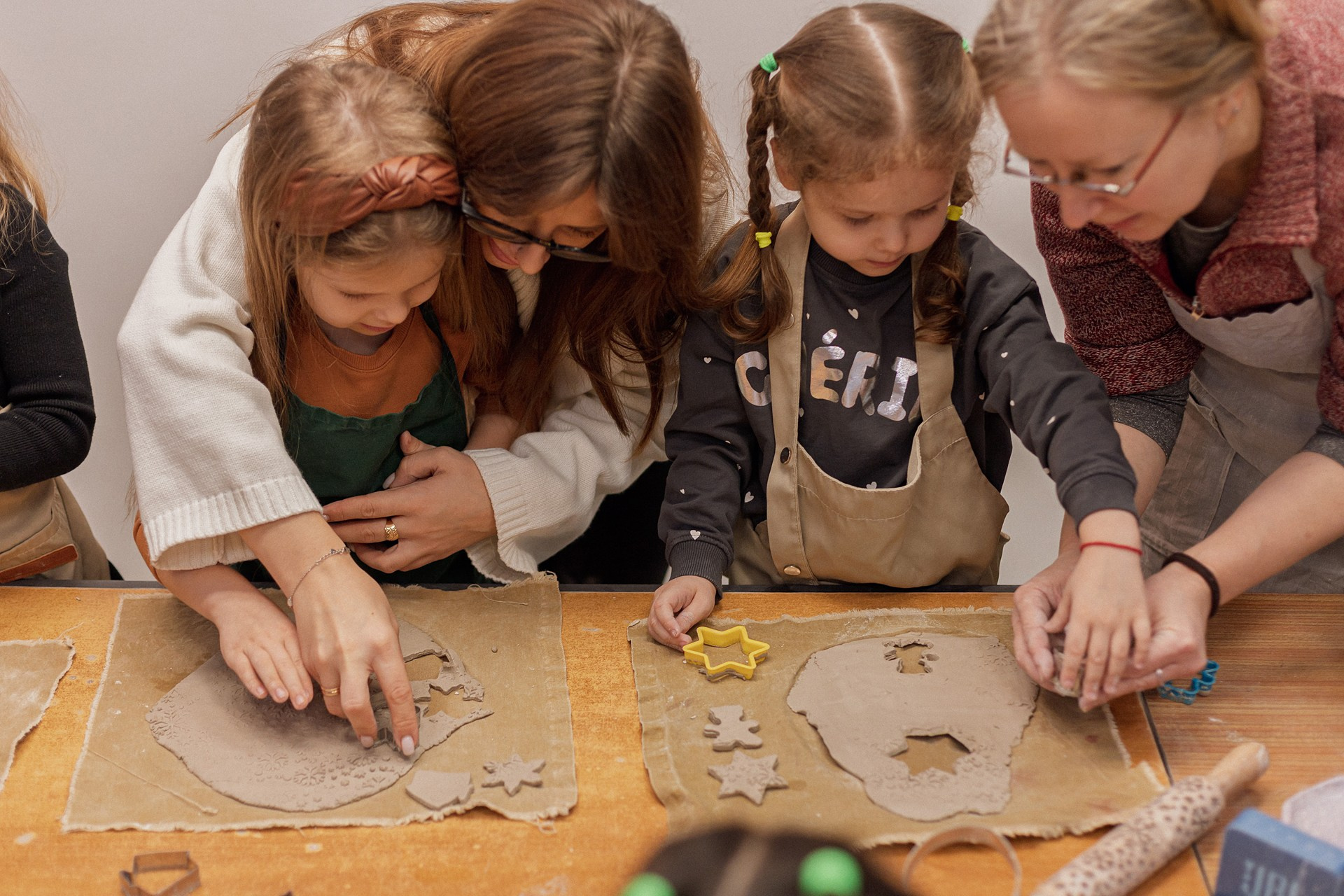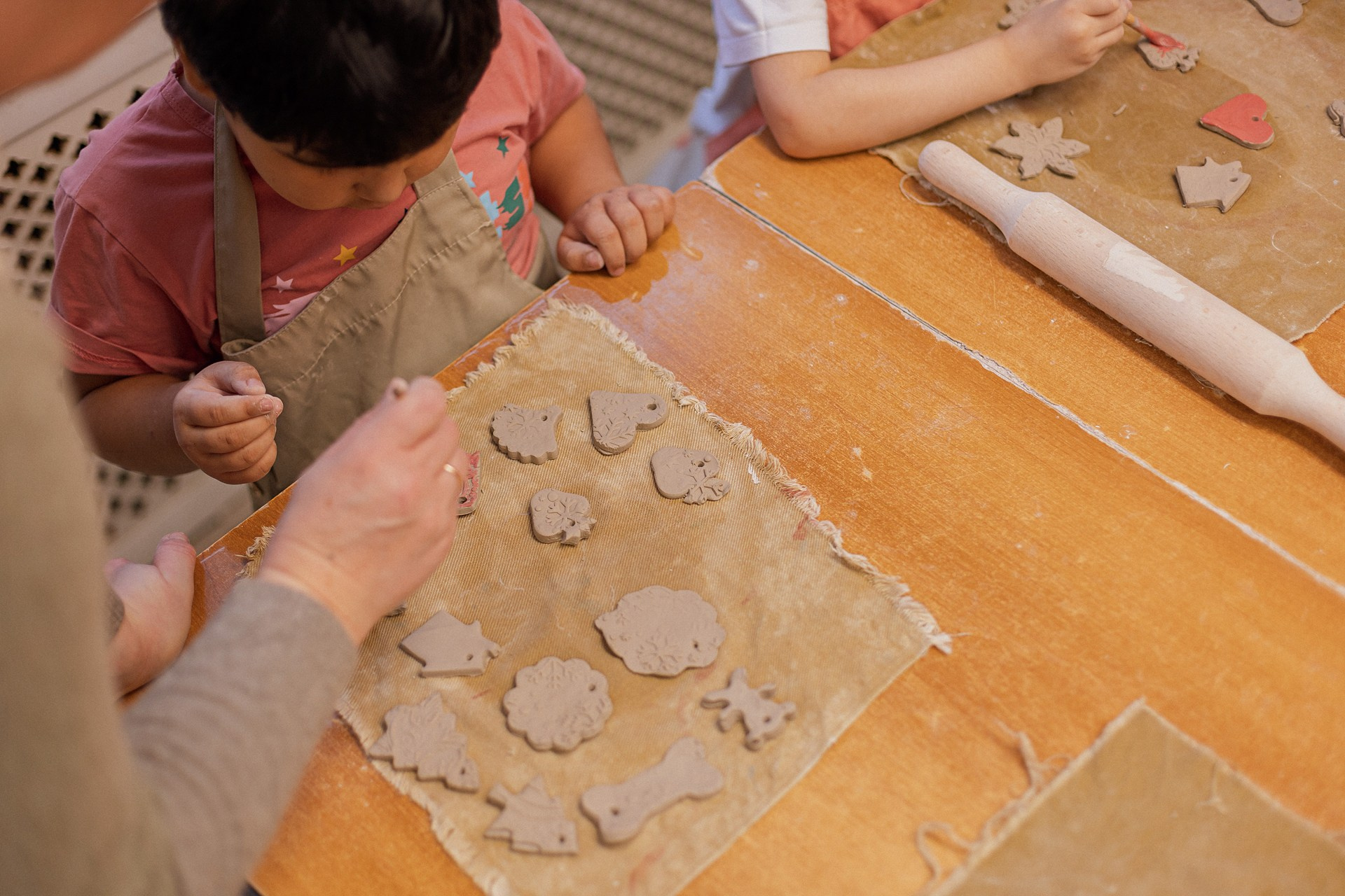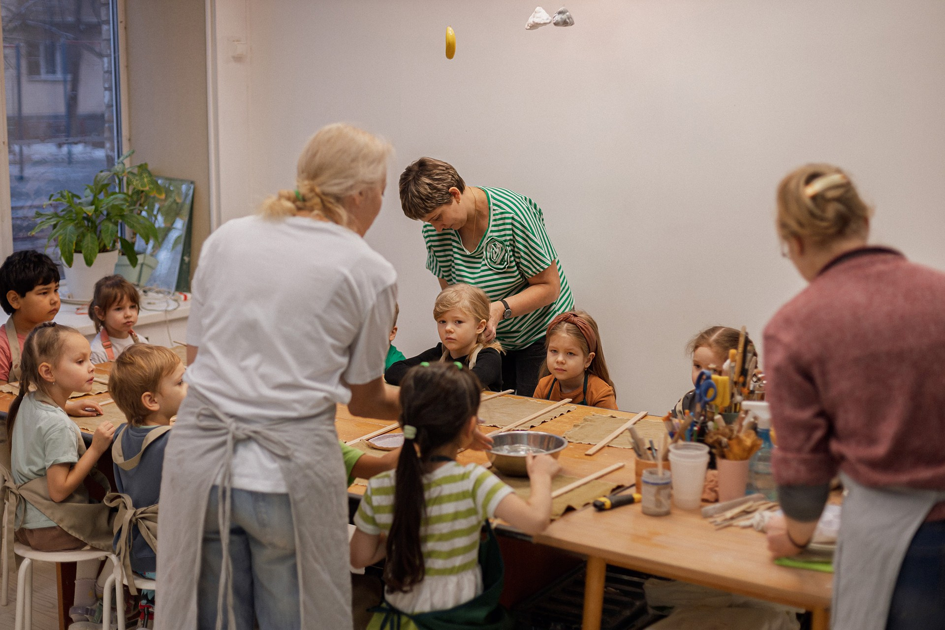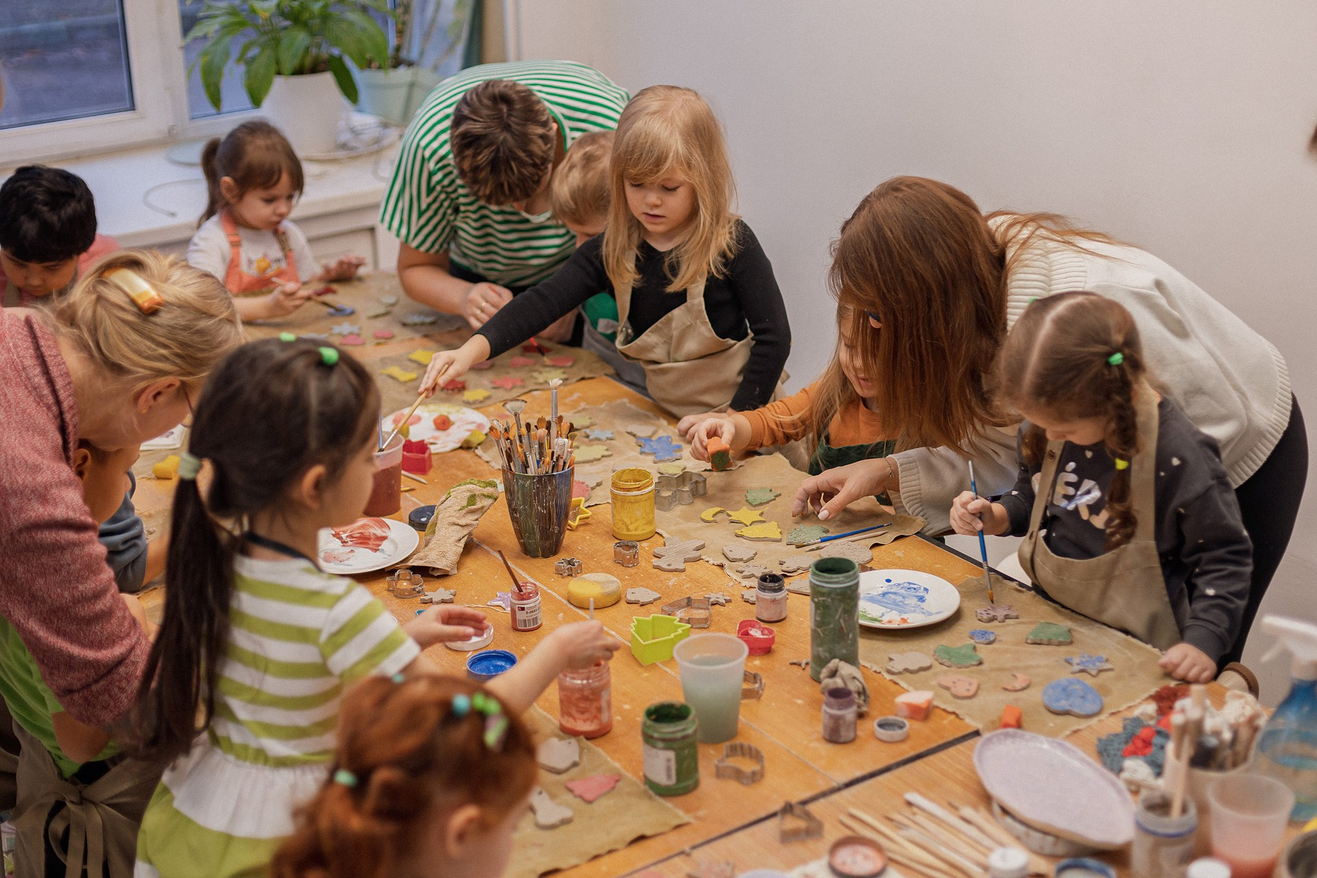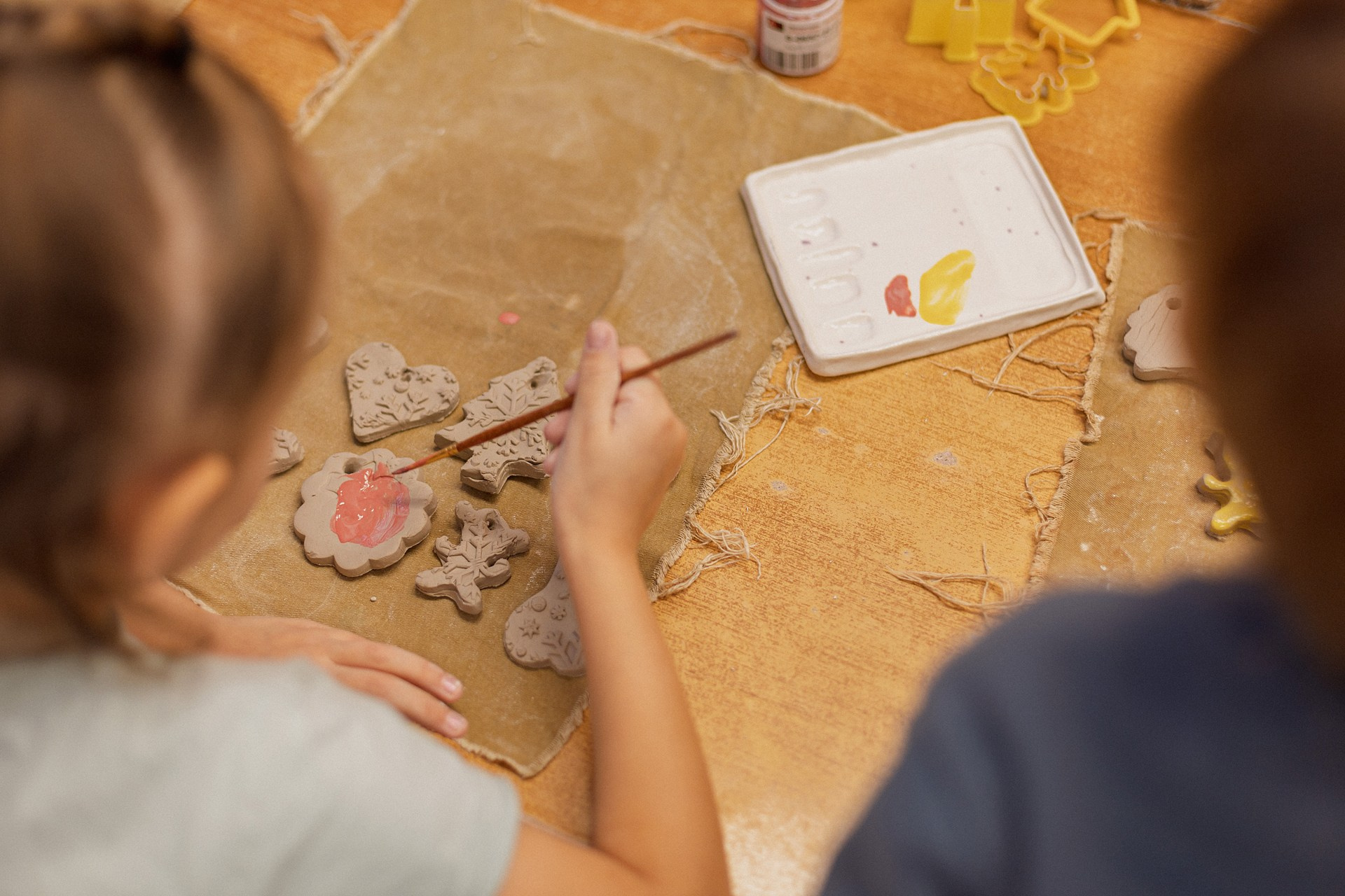 Детишки делали ёлочные игрушки, потом их обожгут в специальной печи при 1000 градусах и они будут готовы.