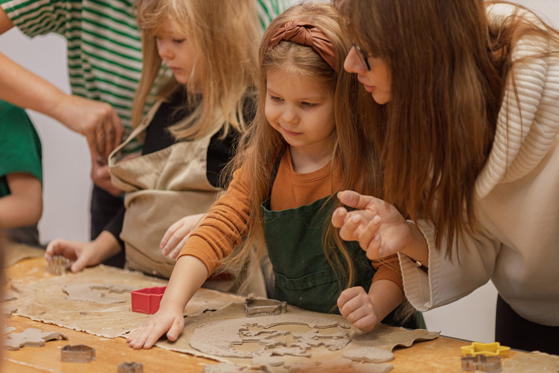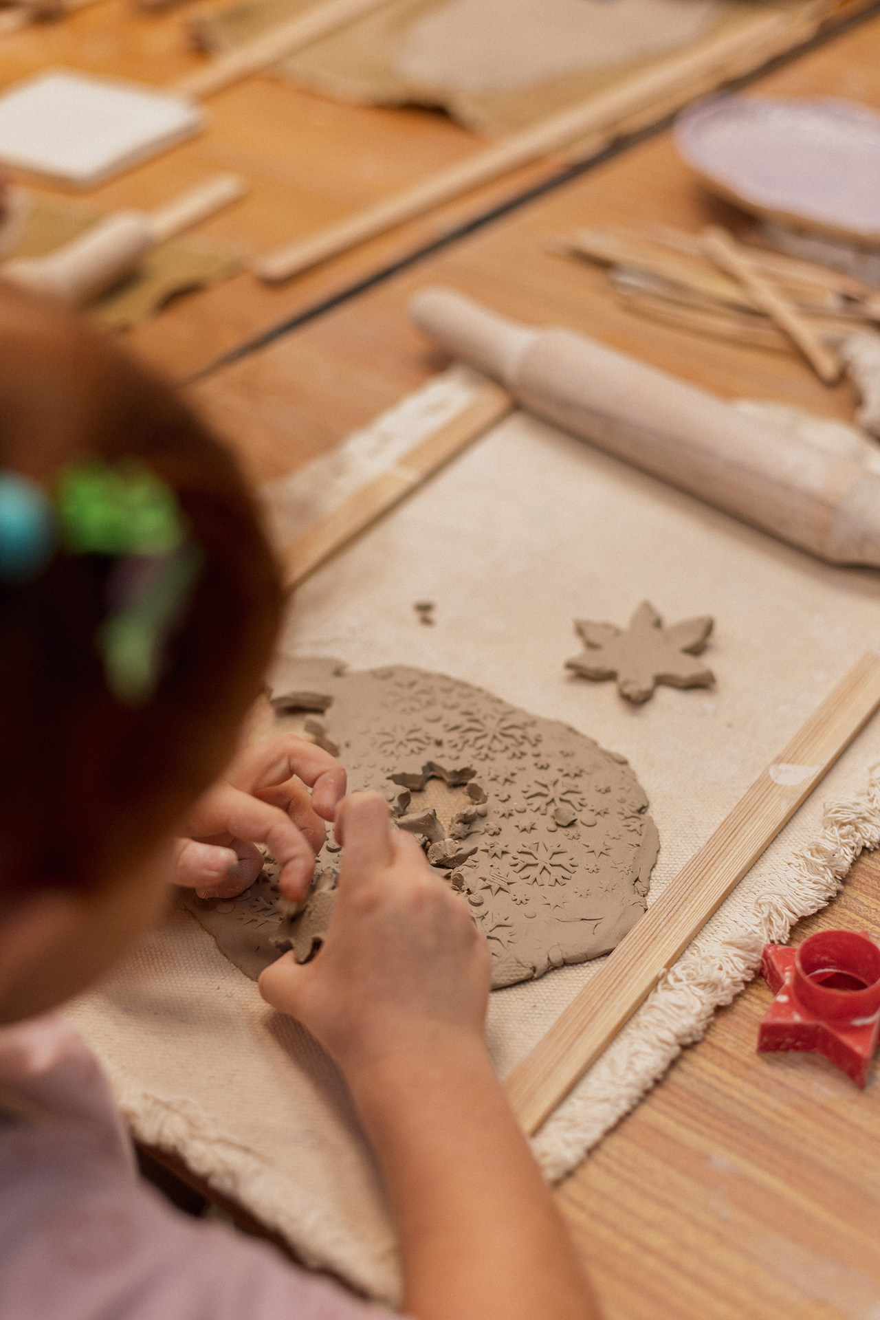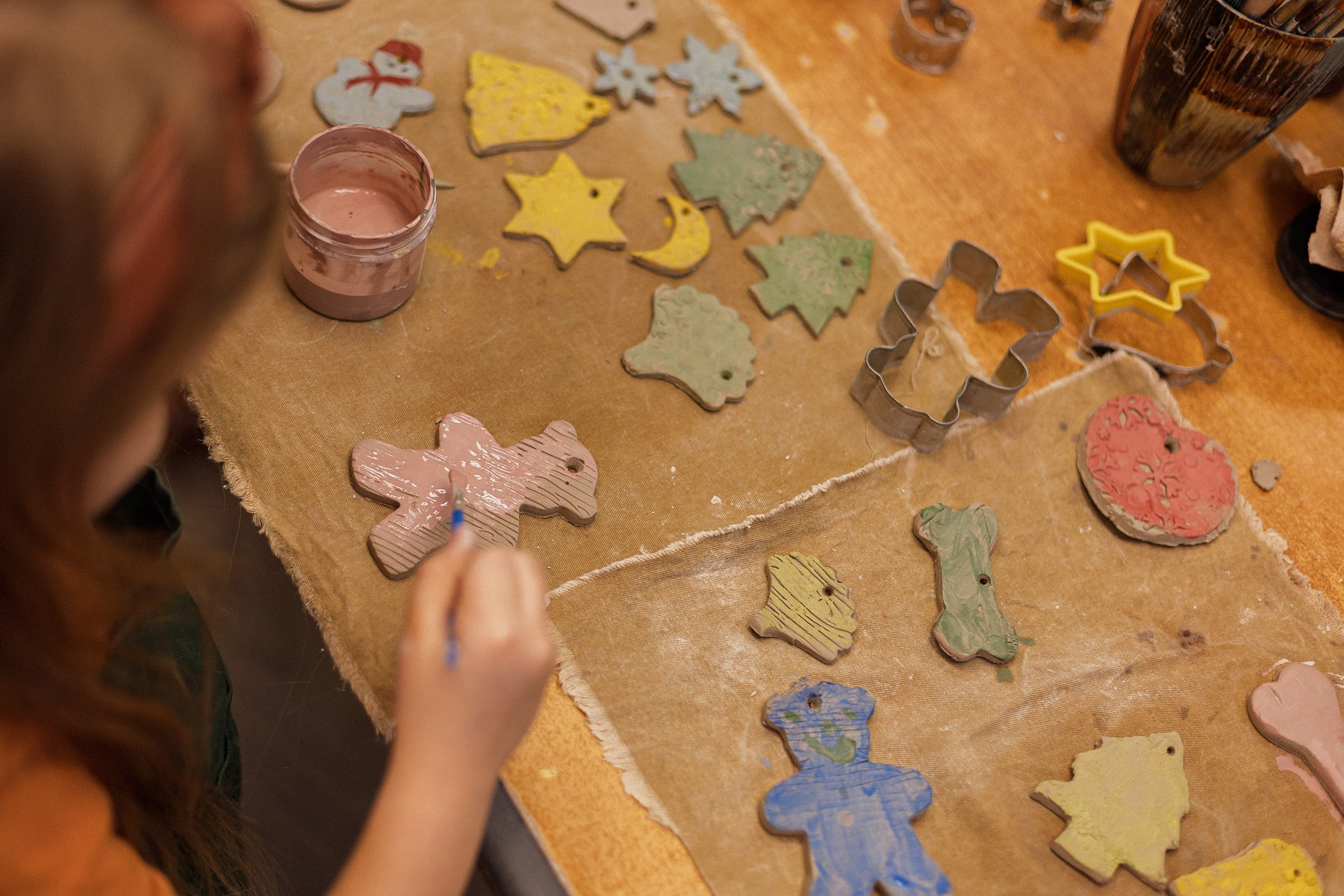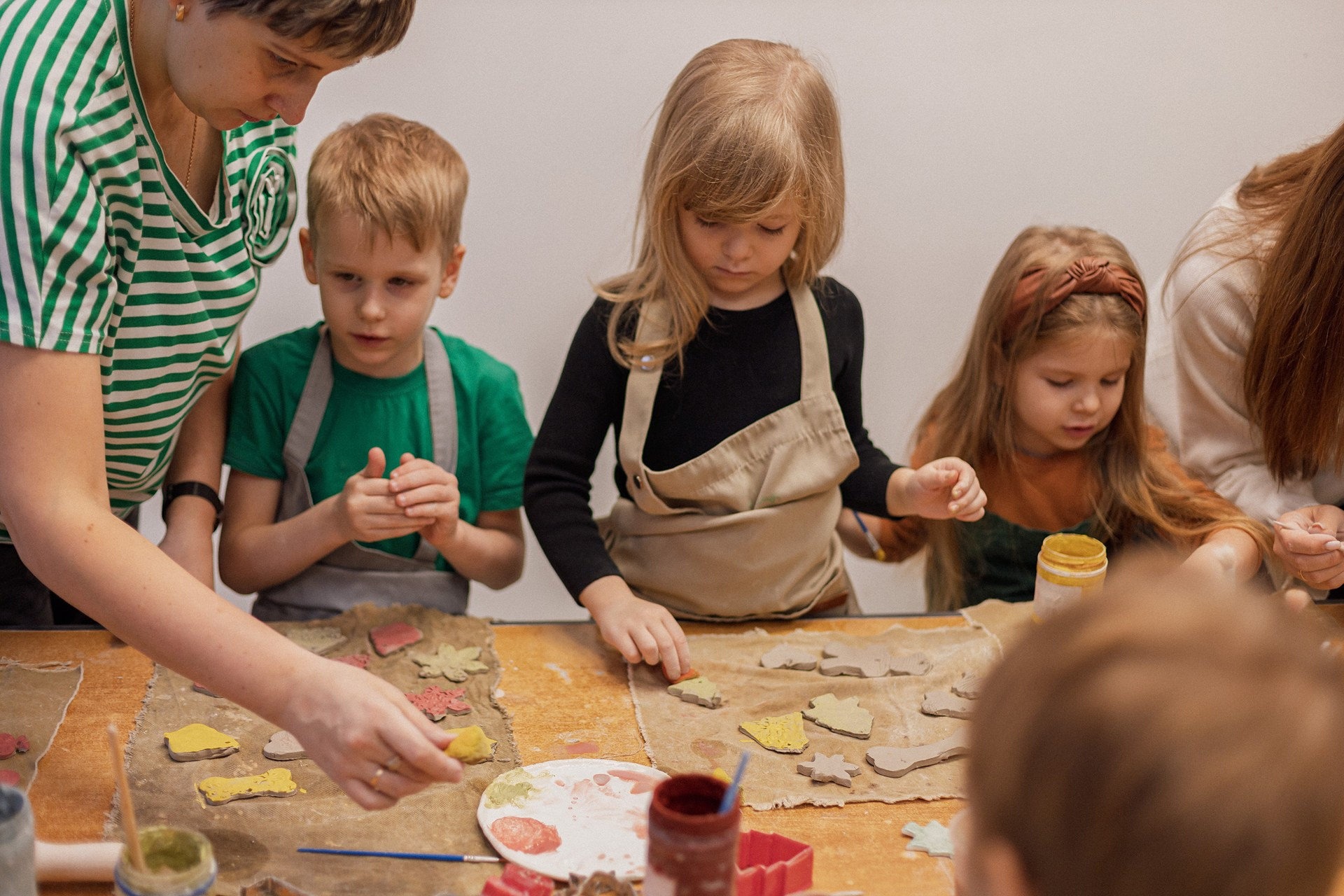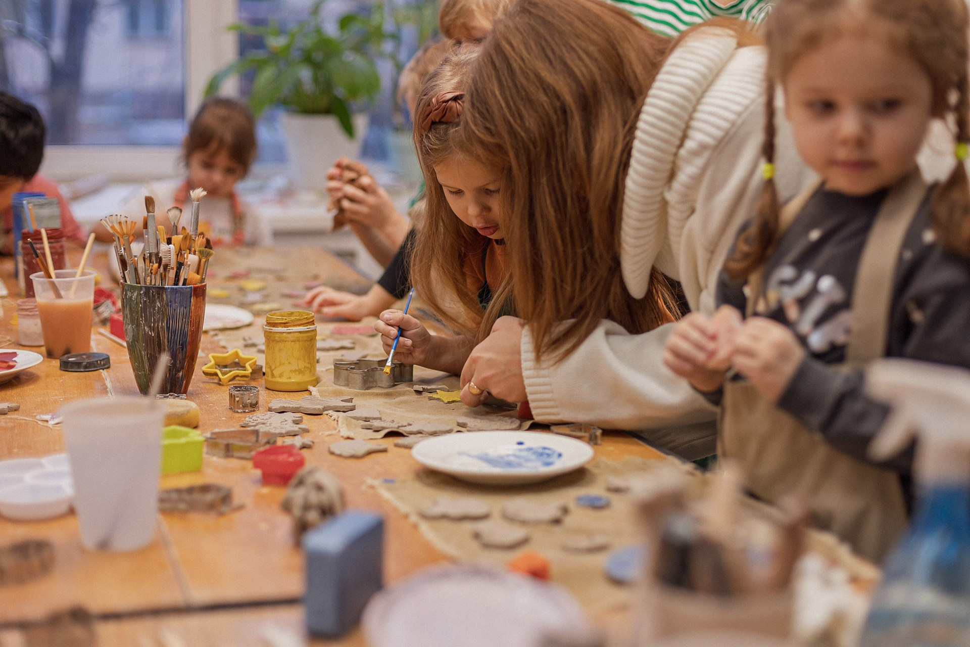 Детишки делали ёлочные игрушки, потом их обожгут в специальной печи при 1000 градусах и они будут готовы.