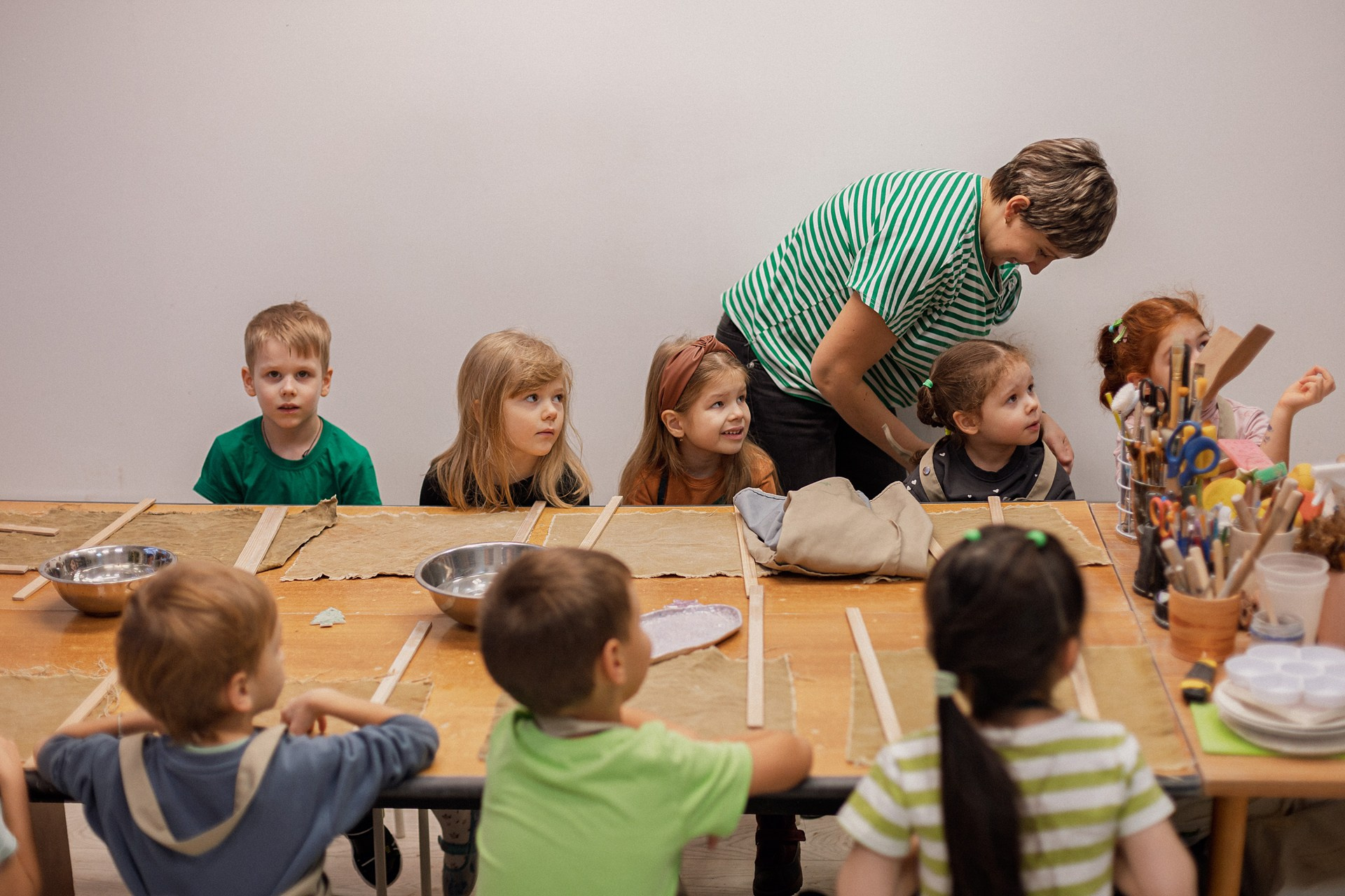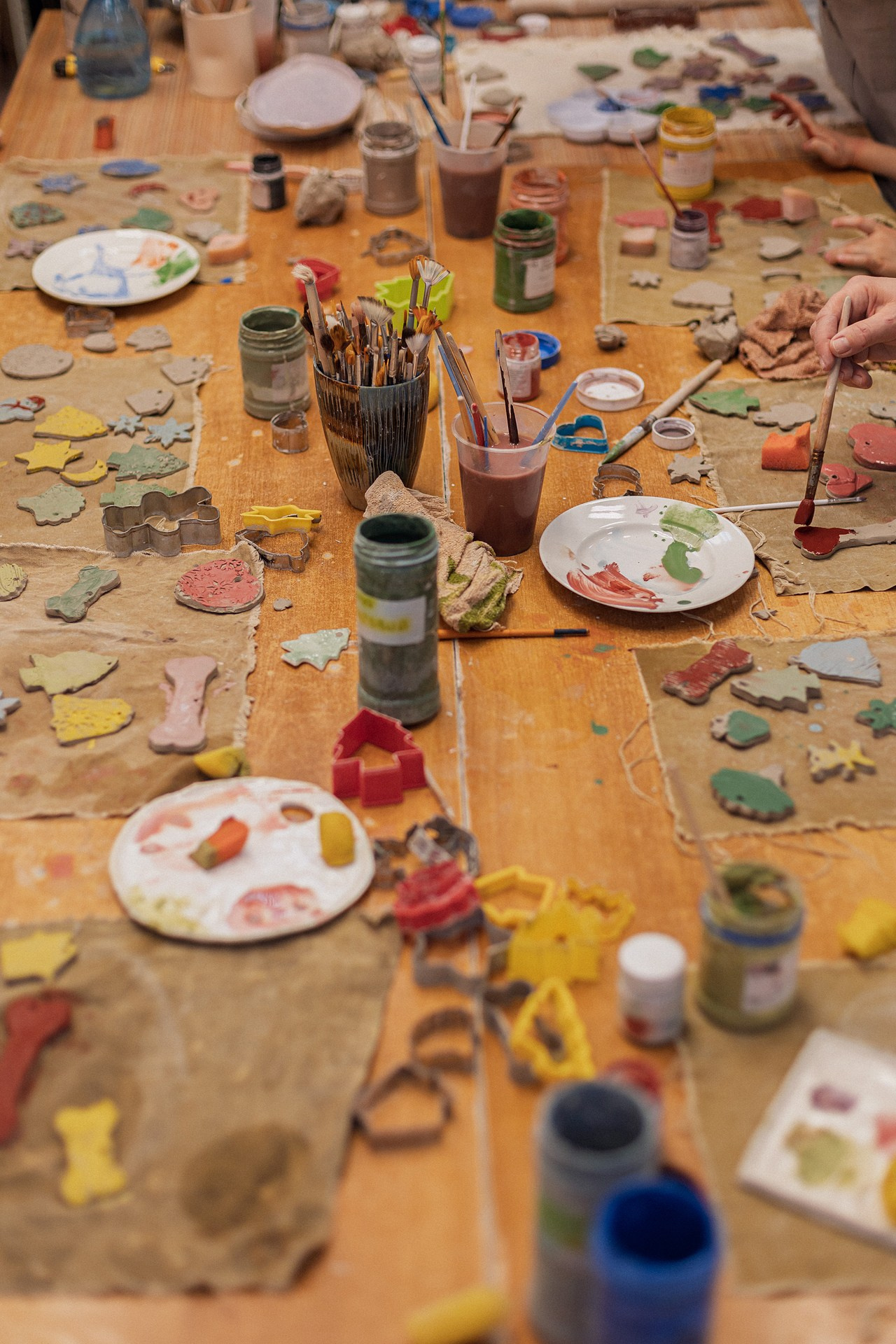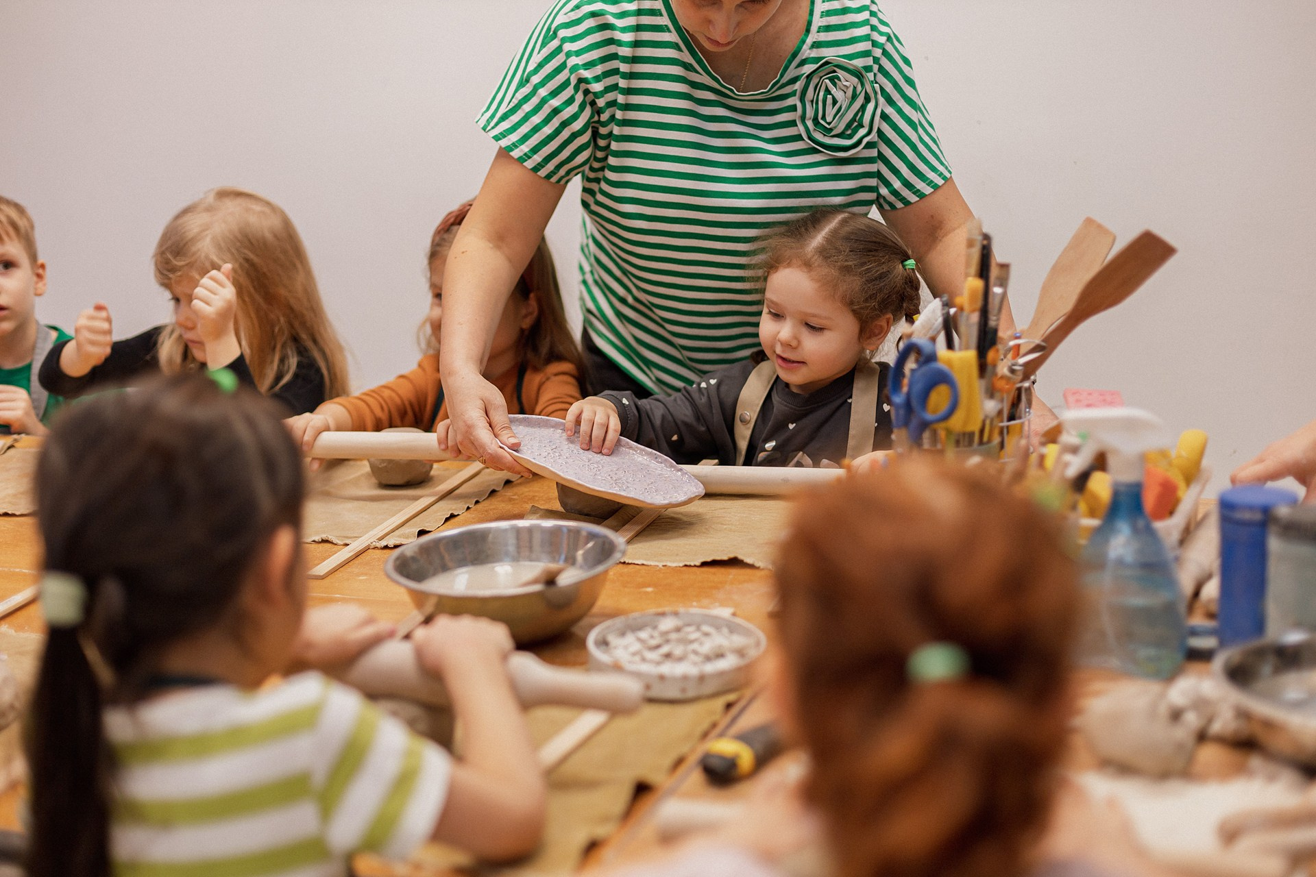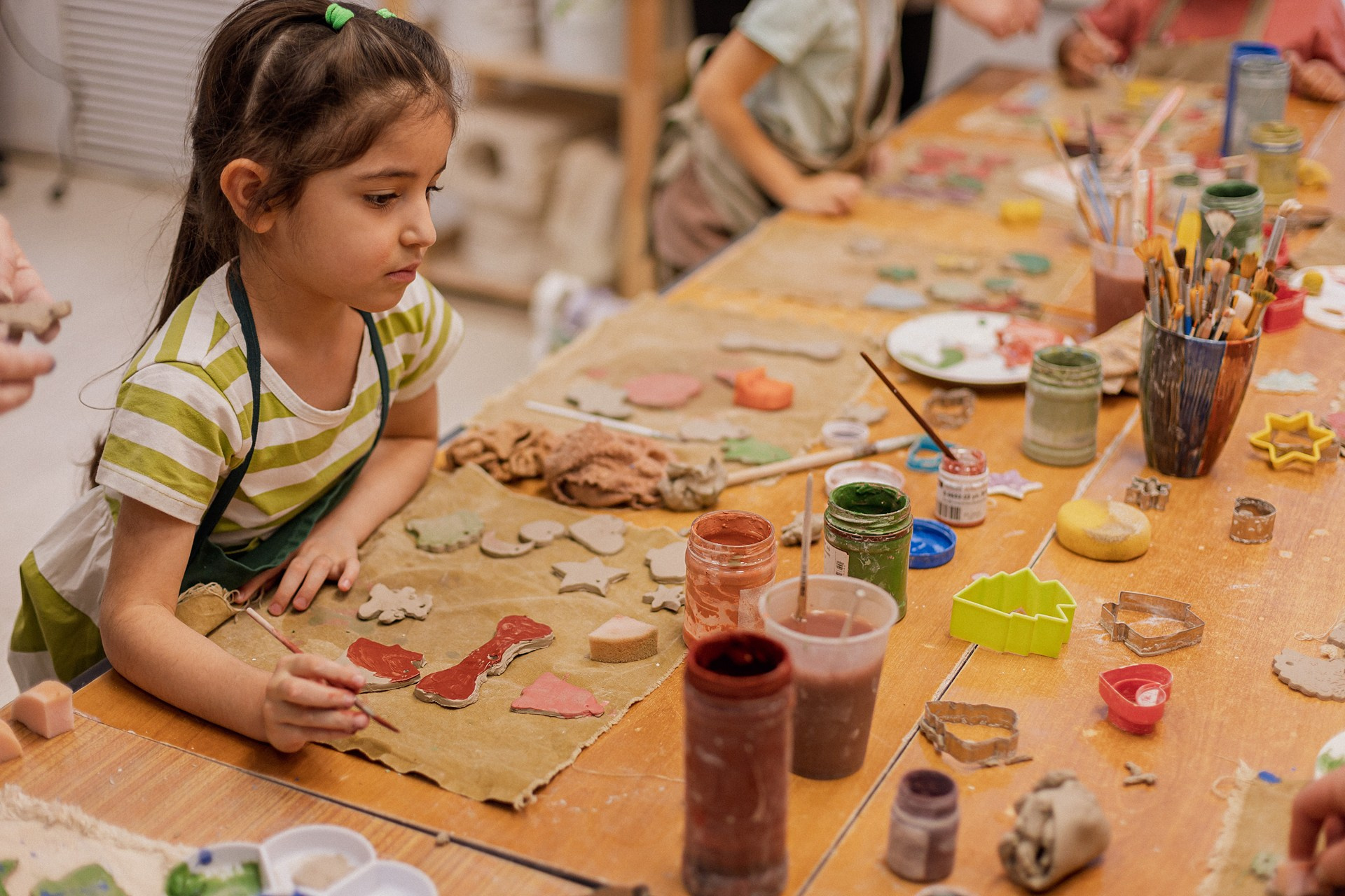 Детишки делали ёлочные игрушки, потом их обожгут в специальной печи при 1000 градусах и они будут готовы.