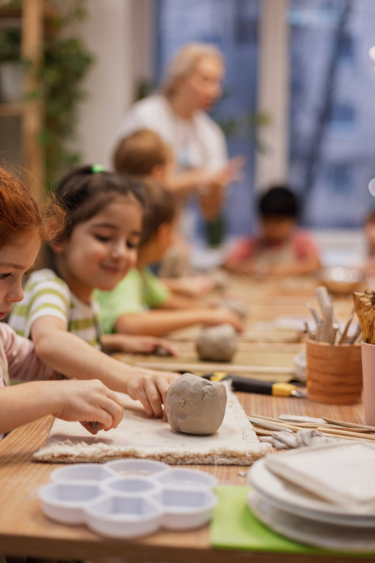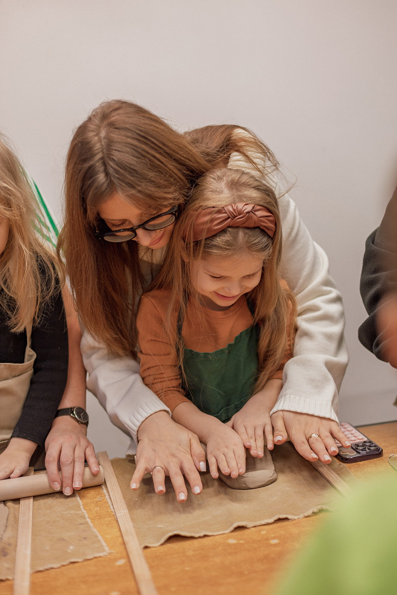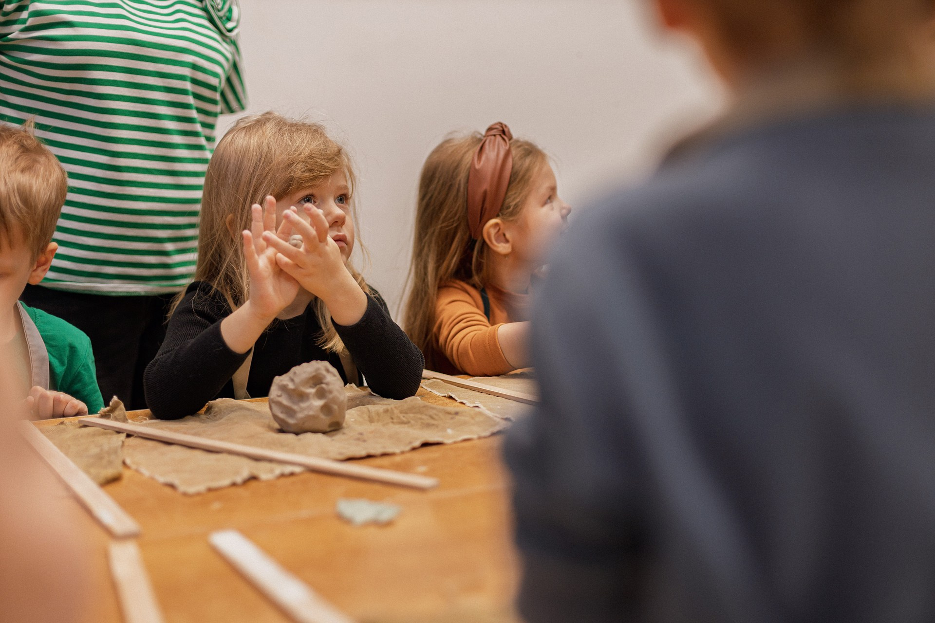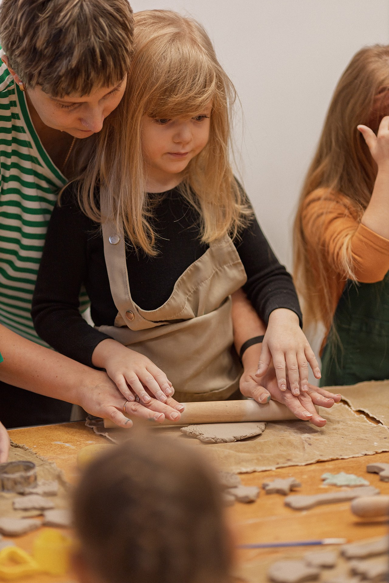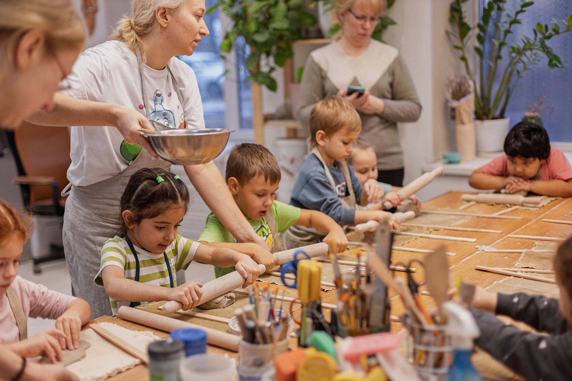 Детишки делали ёлочные игрушки, потом их обожгут в специальной печи при 1000 градусах и они будут готовы.