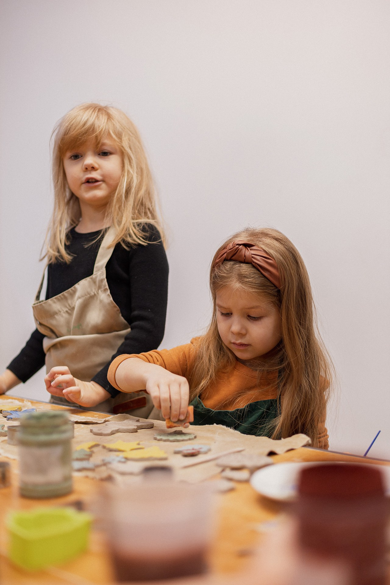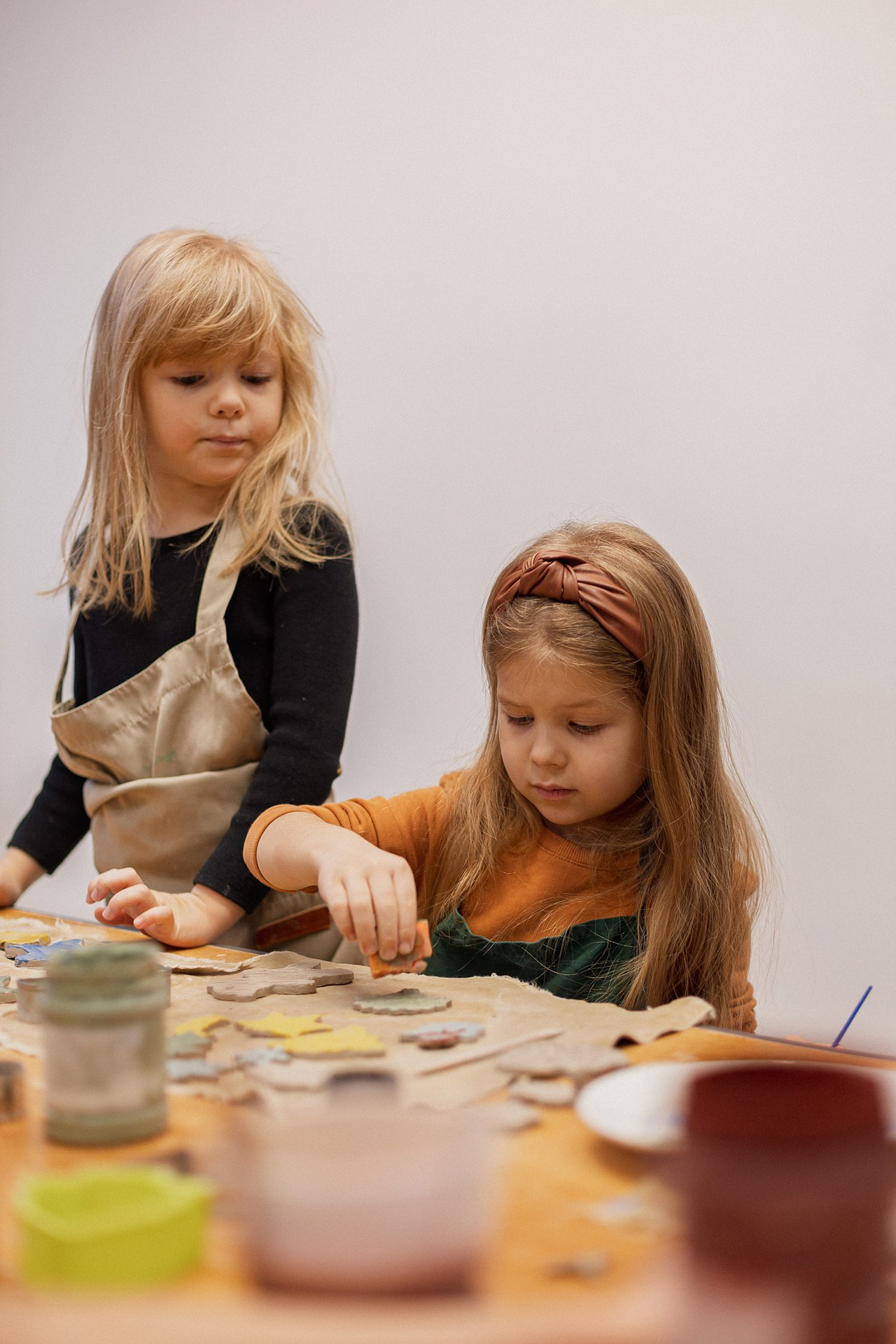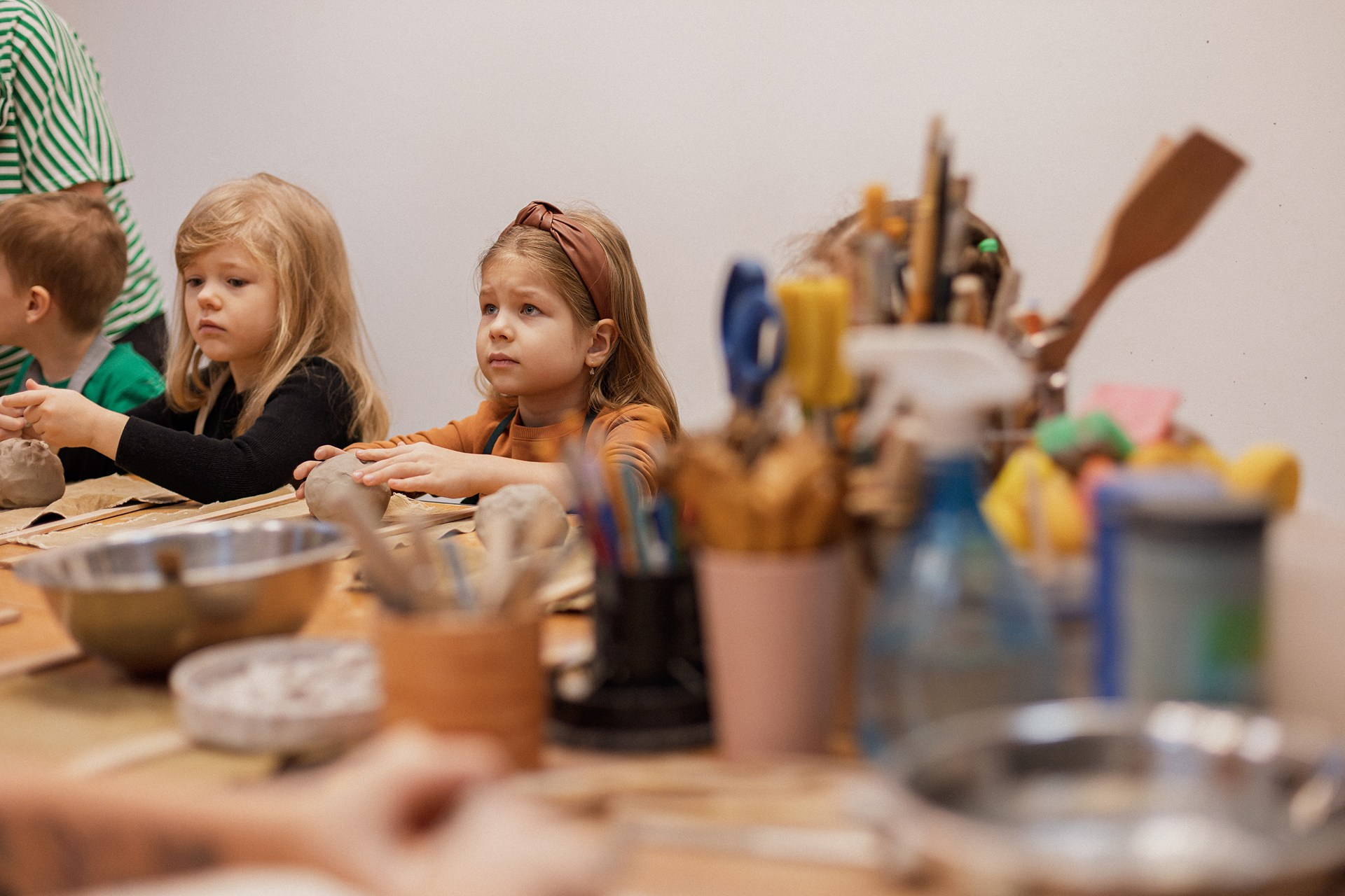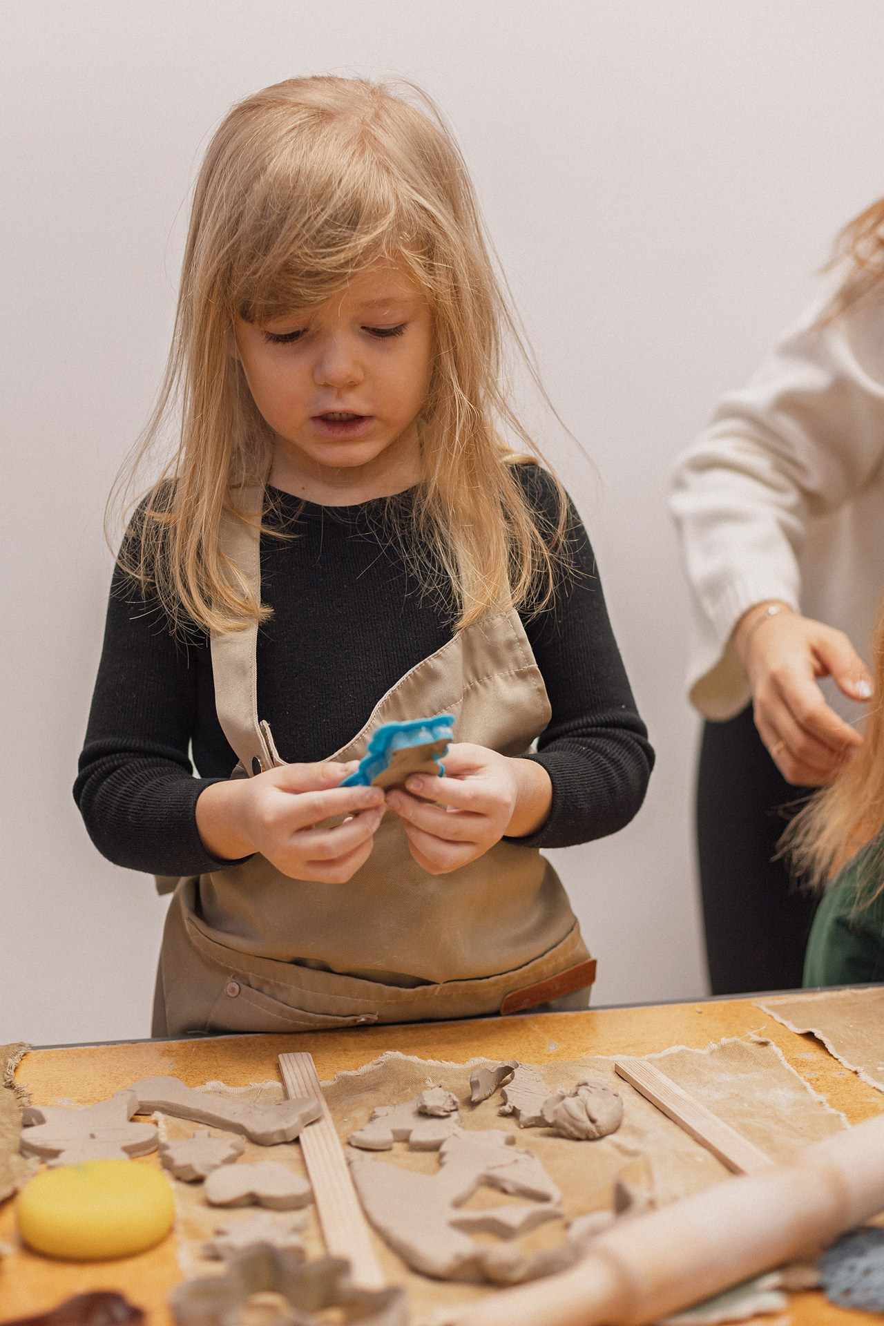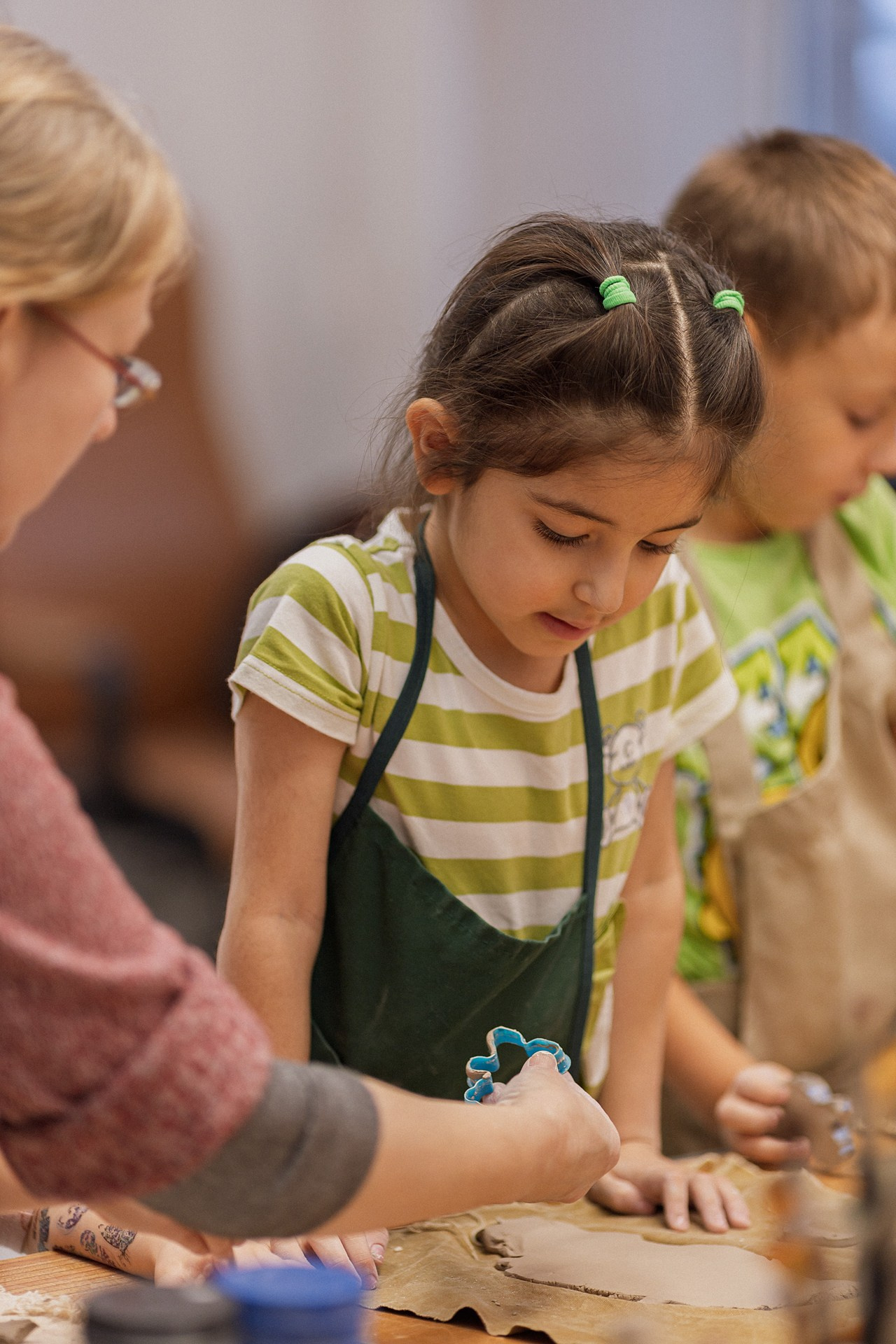 Детишки делали ёлочные игрушки, потом их обожгут в специальной печи при 1000 градусах и они будут готовы.