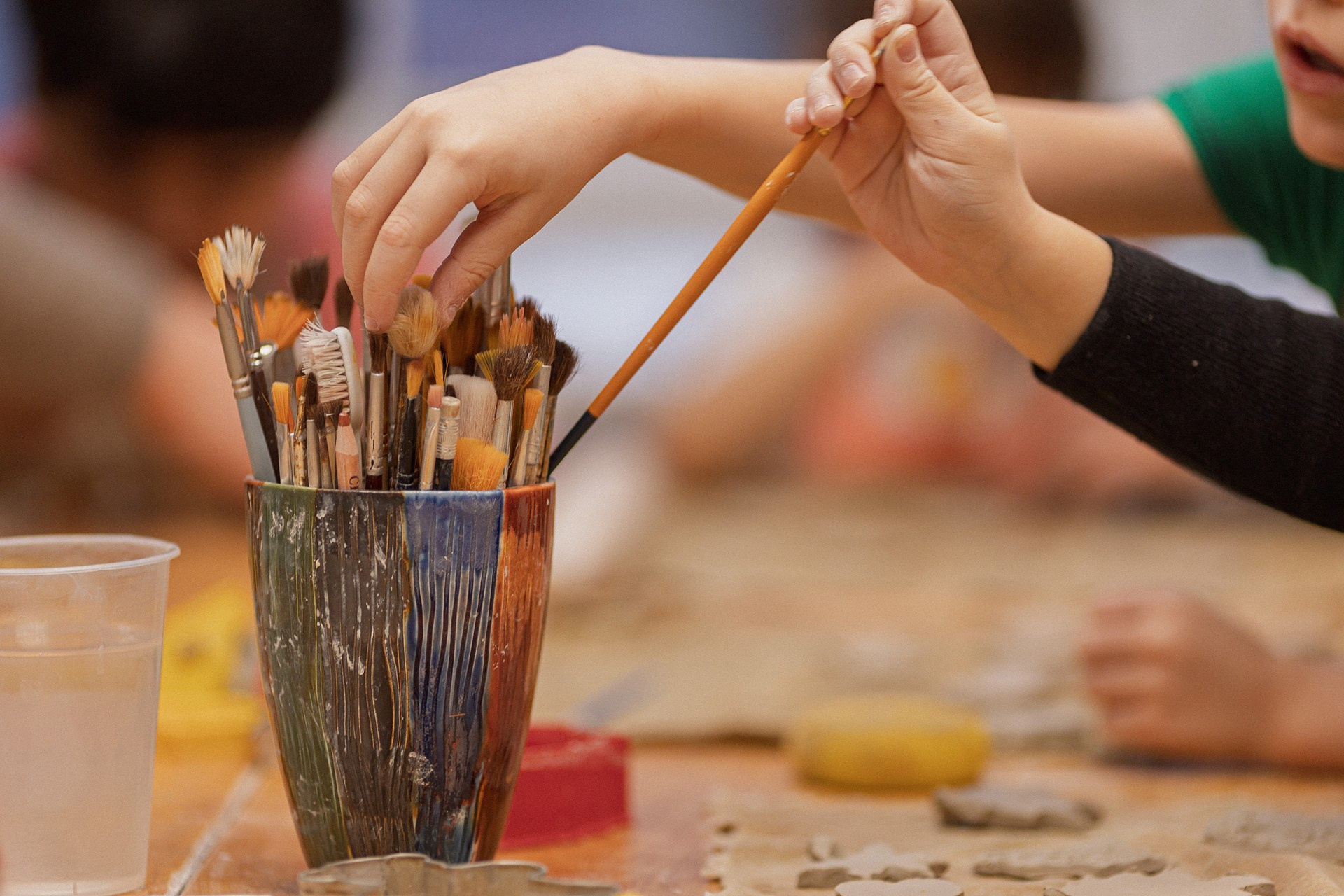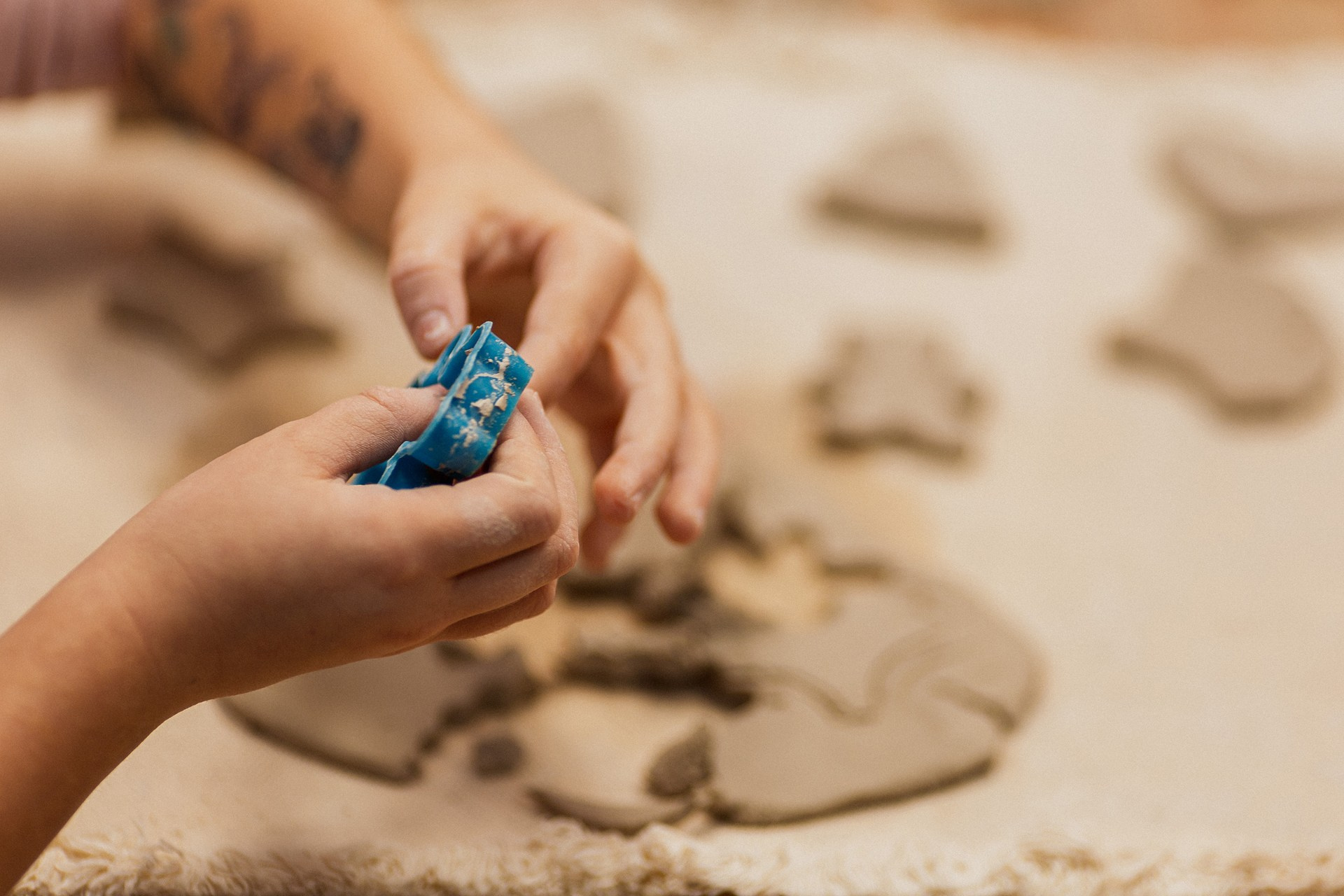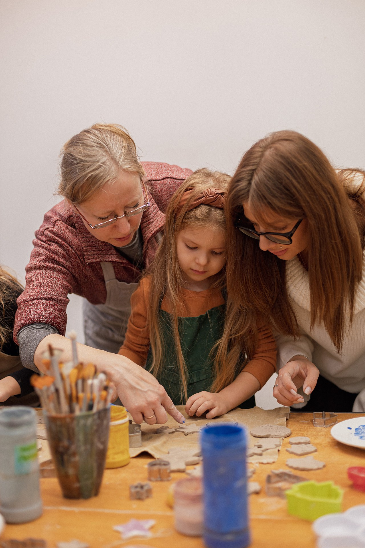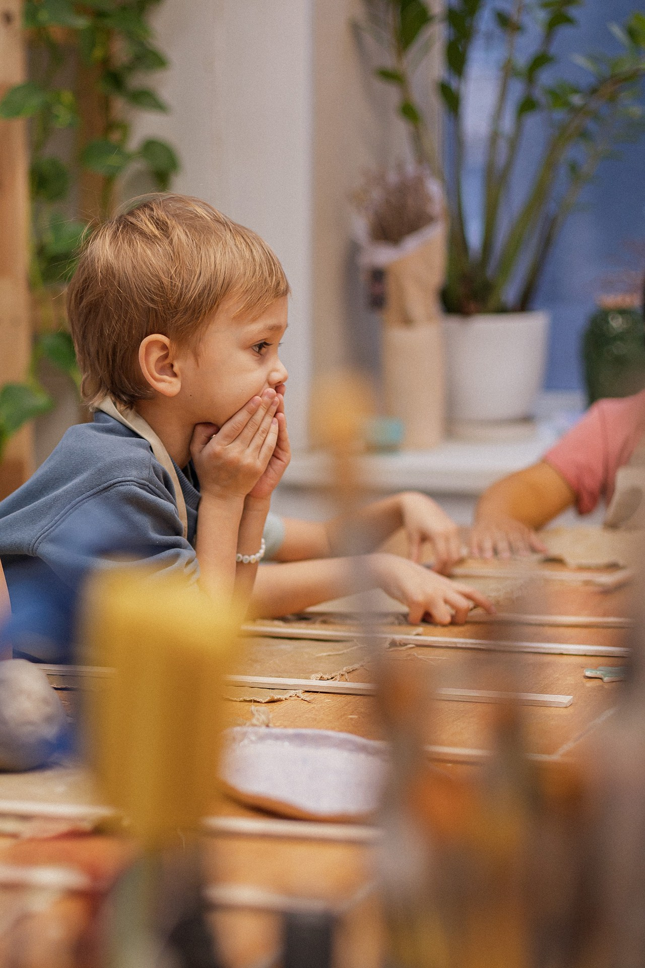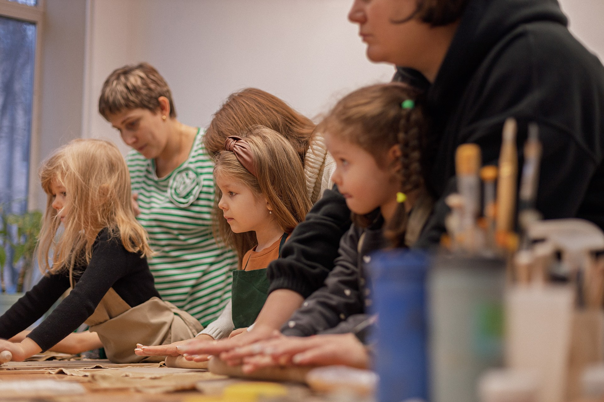 Детишки делали ёлочные игрушки, потом их обожгут в специальной печи при 1000 градусах и они будут готовы.